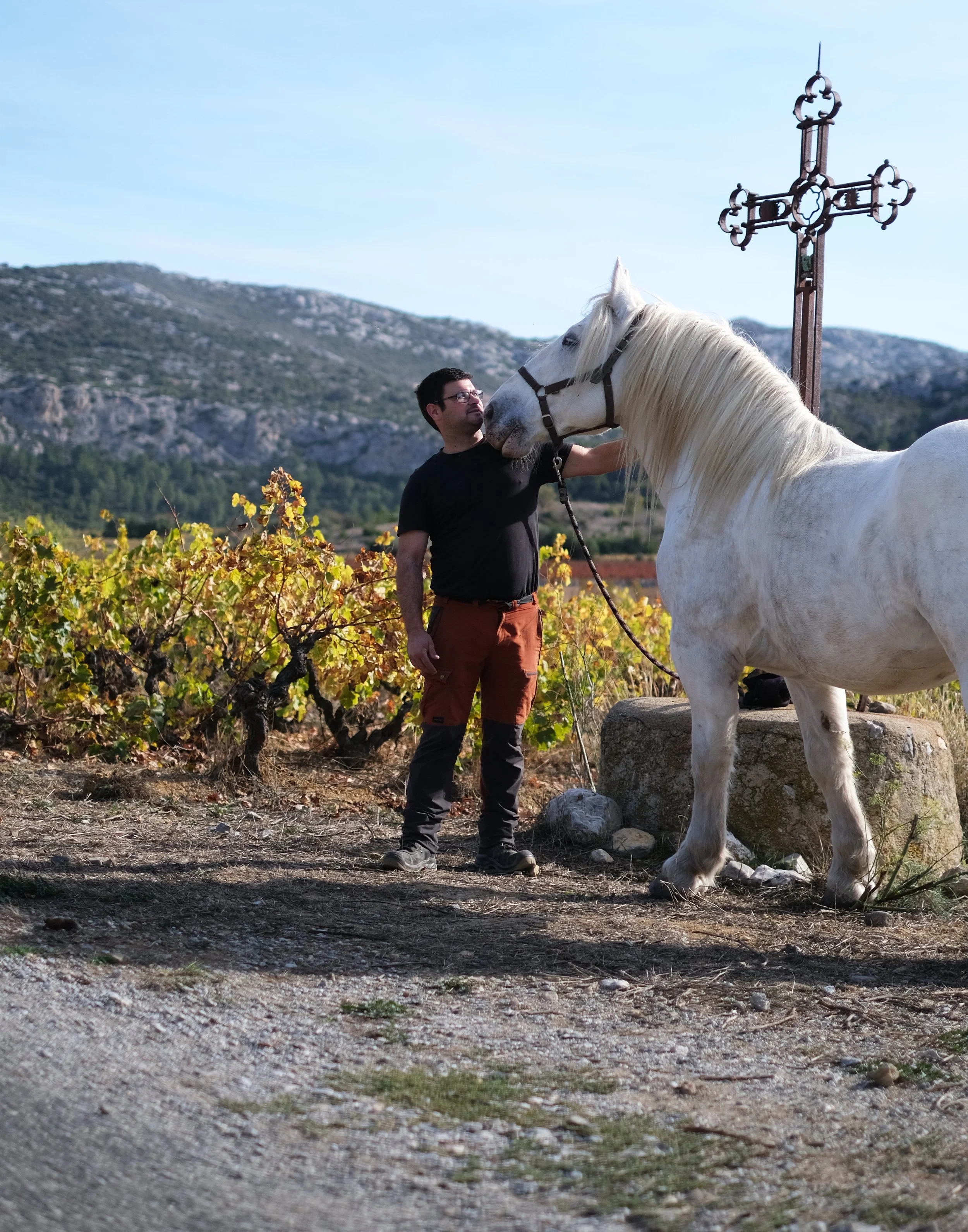 Vineyard is worked by animal traction to avoid compacting the soil and disrupting microbial and fungal life. Biodynamic principles are used to help in that matter.