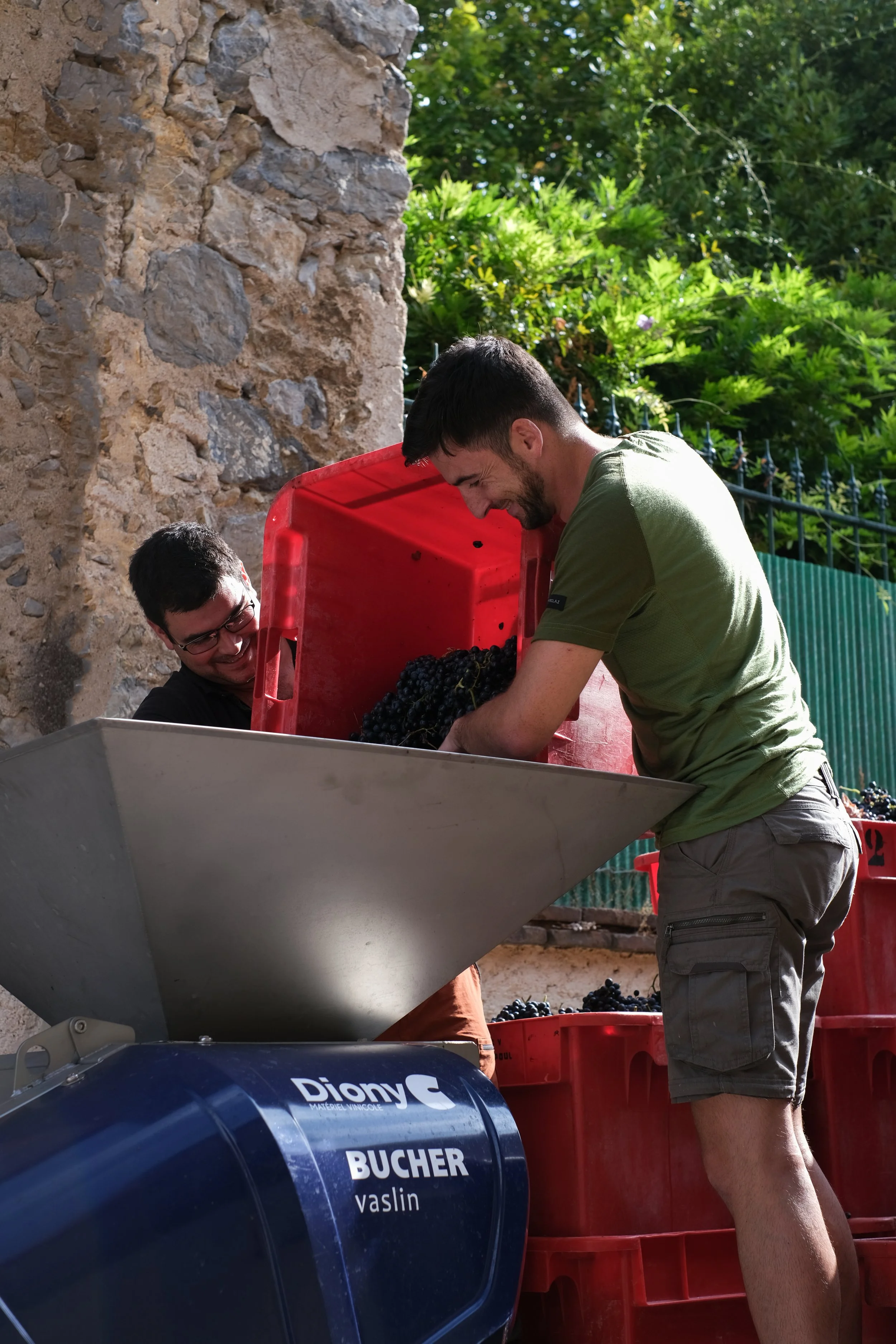 Romain and Thomas, both grandsons of winegrowers, united on this wine venture to create a single estate of organically grown 40 hectares of vines, spread over the main terroirs of Vingrau, some of them are more than a century old ! They work part of their soils with their drought horse "Papillon" (fr. "Butterfly"), and strive to restore and replant the terraces of the valley.
